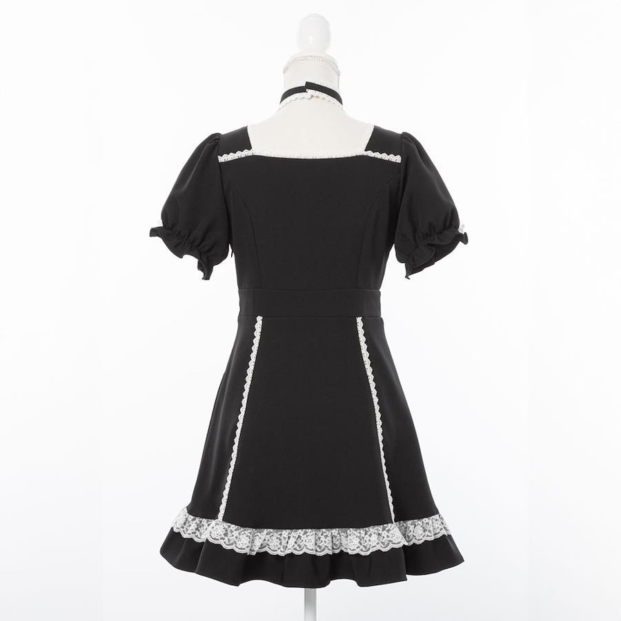 レースや襟のリボン、脇のレースアップなどはホワイトの配色を施し、メリハリのあるデザインに。