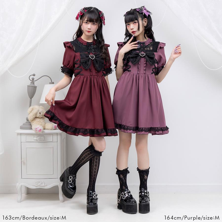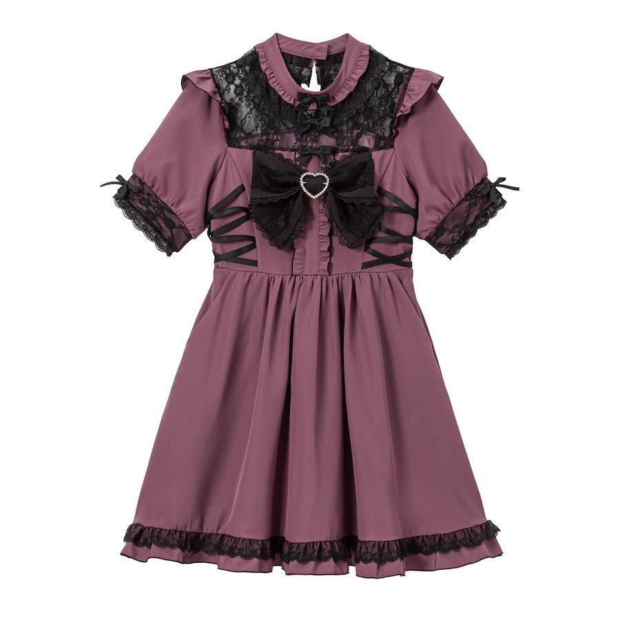 レースフリルとリボンたっぷりの地雷系レースアップワンピース