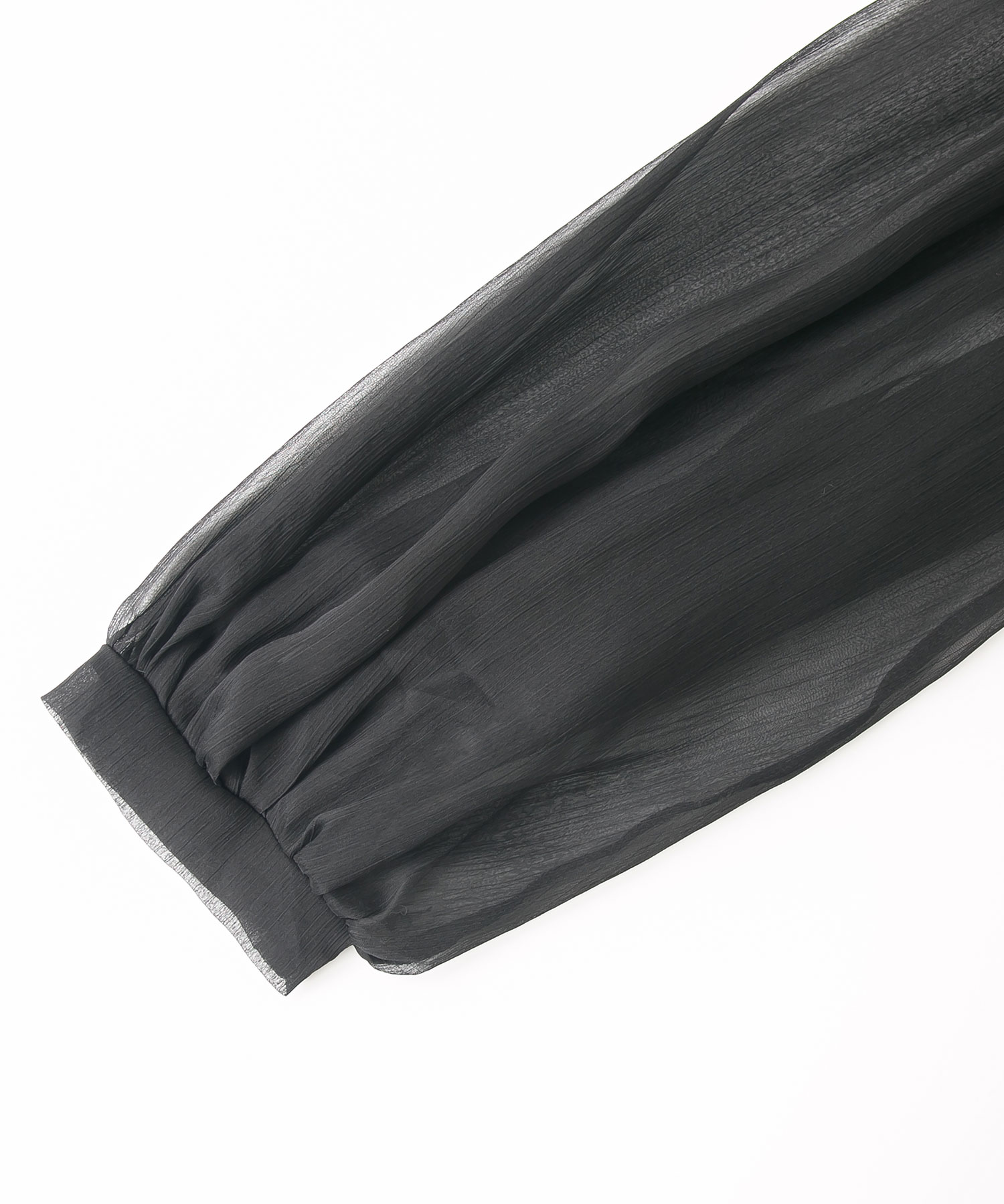 袖や身頃がふんわりとしたボリューム感のあるシルエットになっているため、華やかさとエレガントさを兼ね備えています。