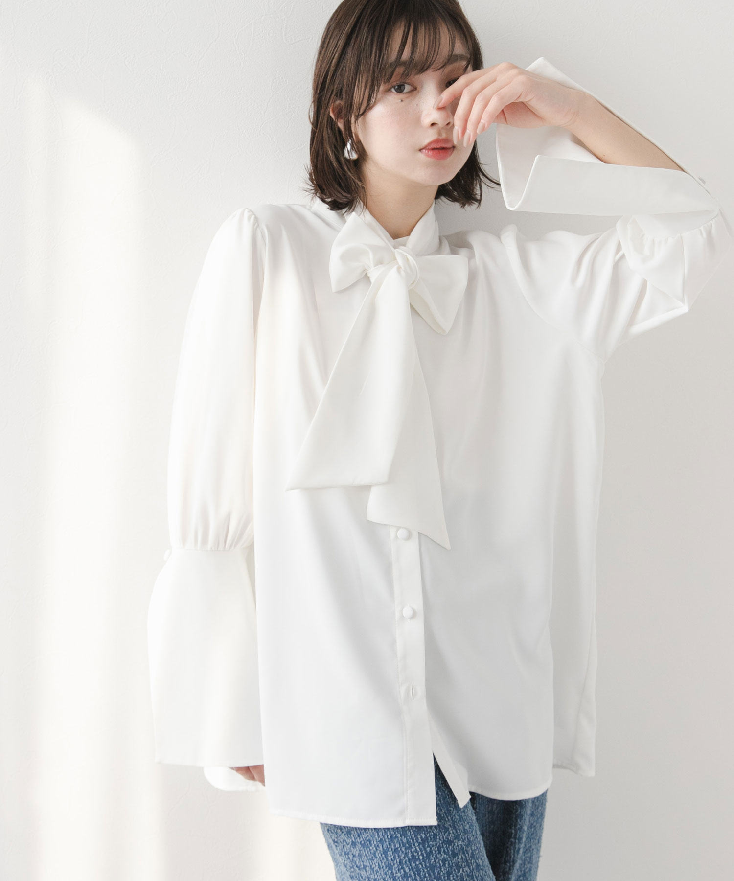 クラシカルで上品なリボンタイブラウス