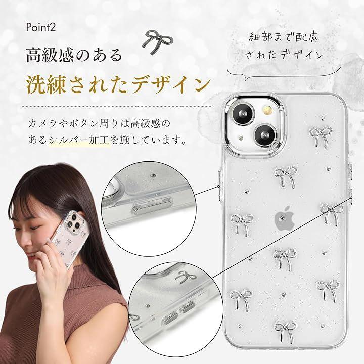 「上品で可愛らしいデザイン」 シルバーの小さなリボンとパール、控えめなラメが散りばめられた、大人可愛いiPhone用クリアケースです。