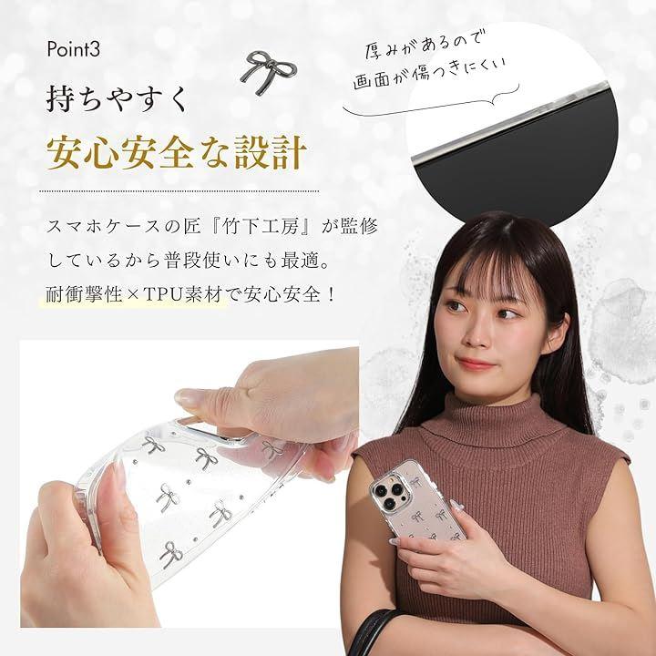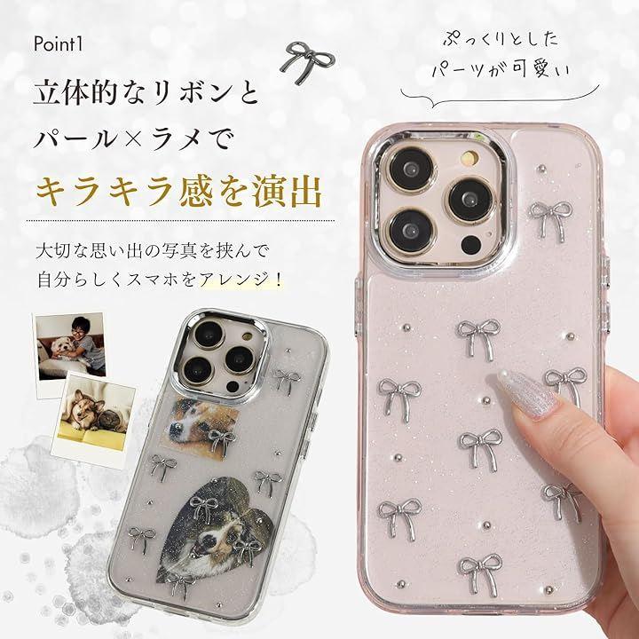 お気に入りのiPhoneの色を活かしつつ、リボンやラメのデザインがアクセントとなり、自分だけのスタイルを演出できます。