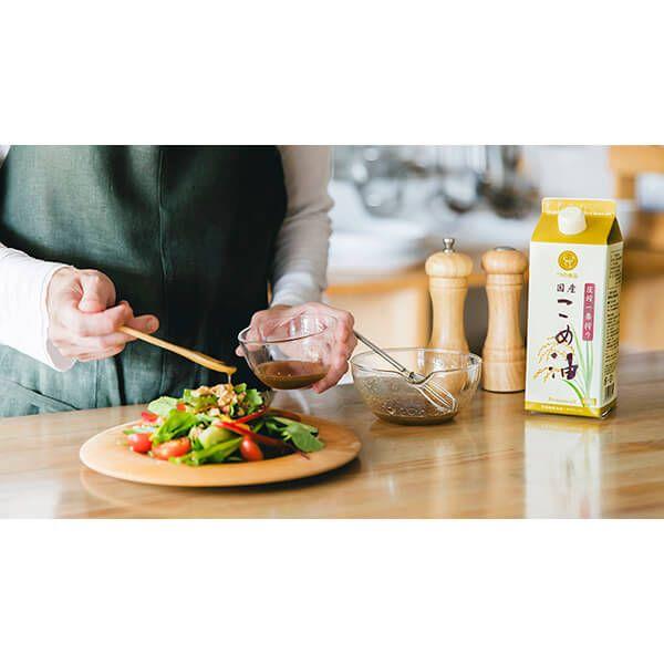 従来のこめ油と同様に揚げ物をはじめ、炒め物・焼き物、和え物やドレッシングなどの生食、炊飯時にひと足しなど、調理方法を選ばずあらゆる料理が美味しくなります。毎日のお食事にぜひお役立てください。