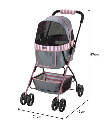 折りたたんでも自立するので、立てかける必要がありません。2kgまで収納できるバスケット付きです。フードとバッグ部にメッシュを設けてあるので通気性が良く、中のペットの様子が確認できます。飛び出し防止用留め具が2本付きなので、2頭入れも対応します。