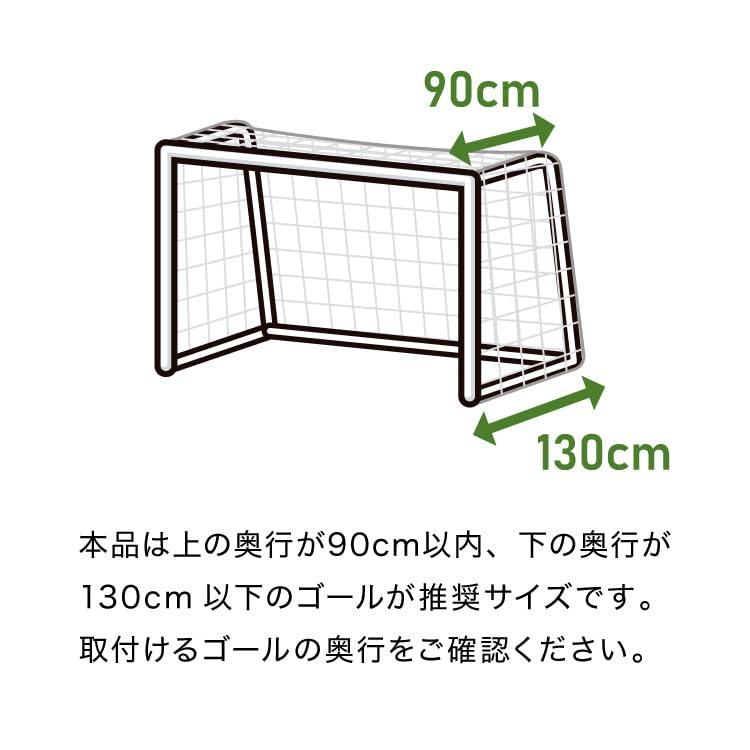 サイズ(約) フットサルサイズ:幅310×高さ210×奥行き(上)90×奥行き(下)130cm 網目:14×14cm ネットの太さ3mm(440t/60本) ※許容範囲:約±5%