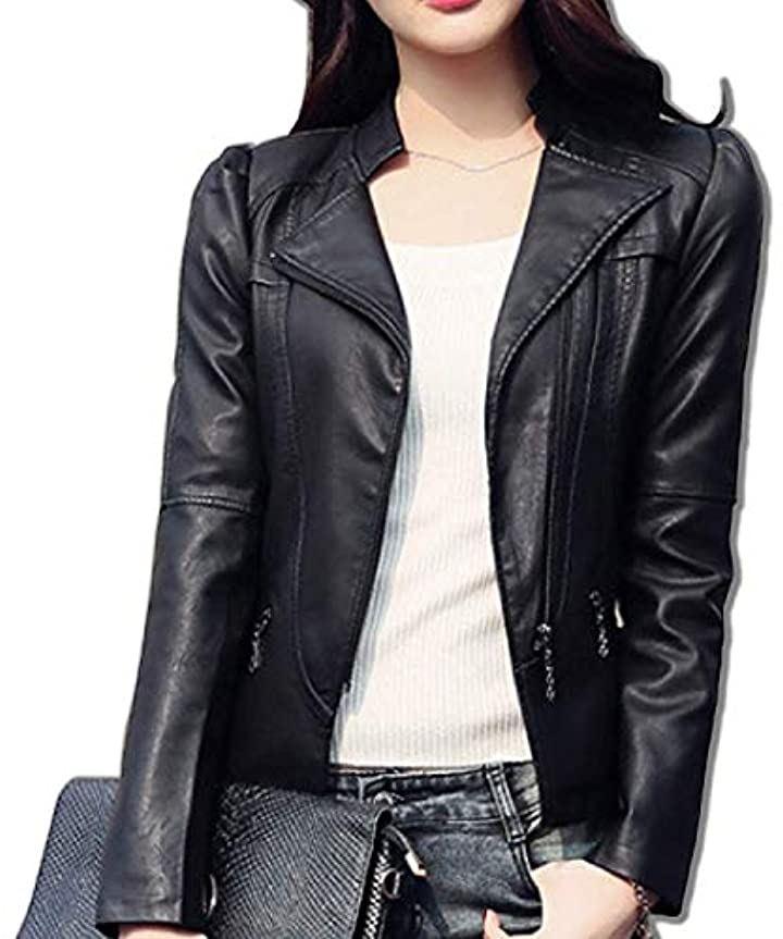 (SCGEHA)ライダースジャケットフェイクレザーレディースブルゾン黒ブラック合皮PU素材