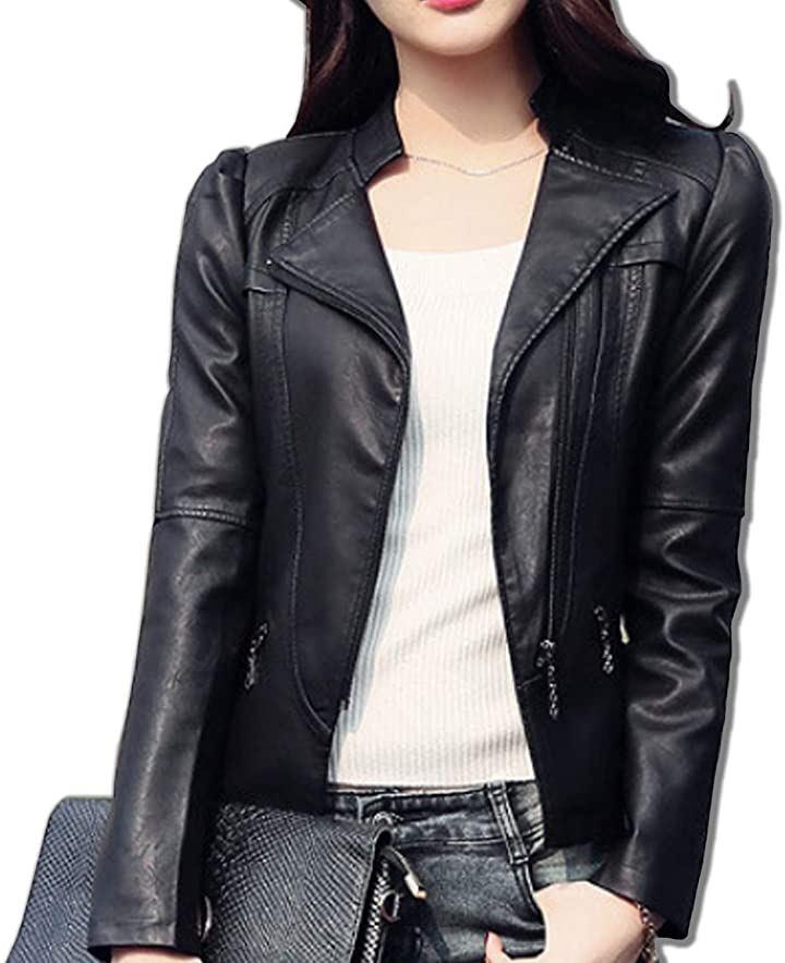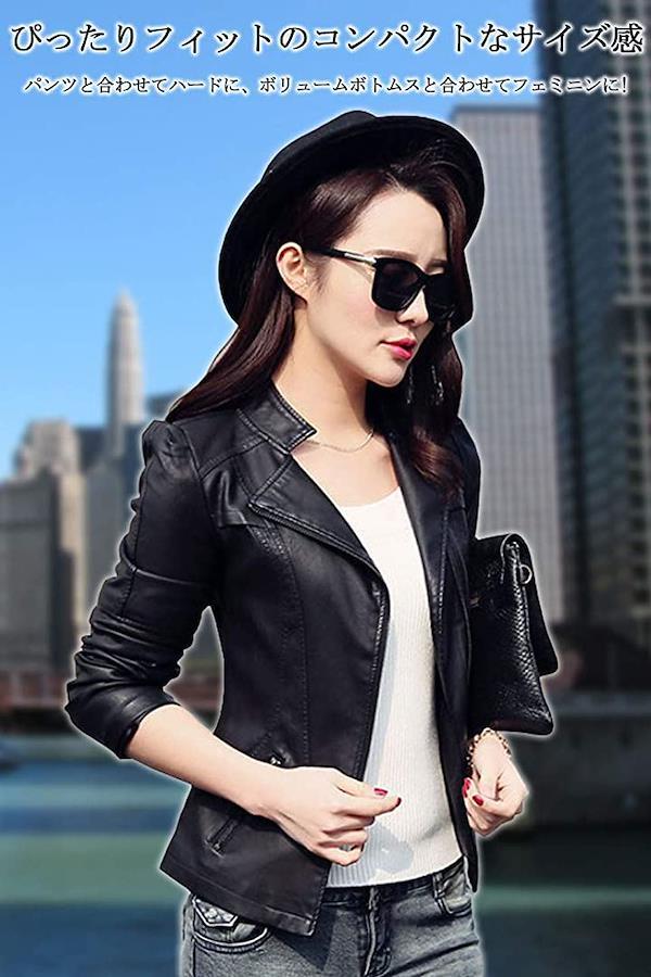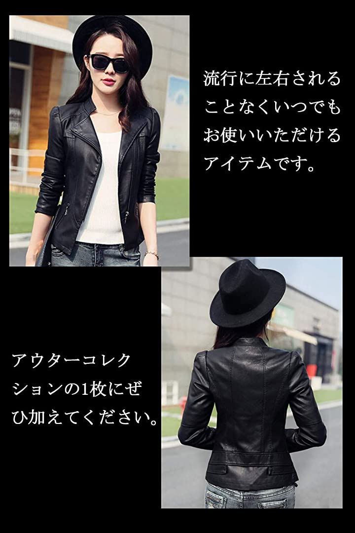 (SCGEHA)ライダースジャケットフェイクレザーレディースブルゾン黒ブラック合皮PU素材
