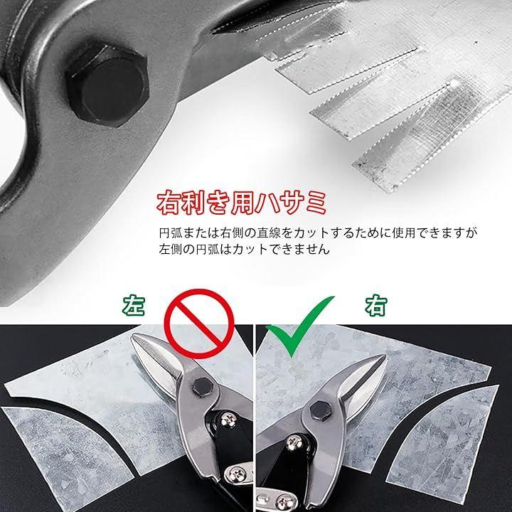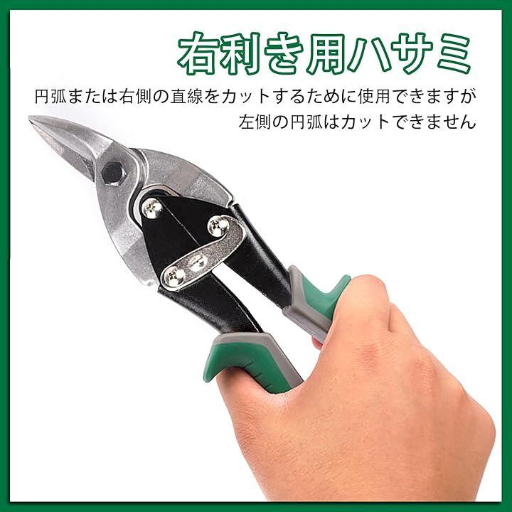 「右利き用バサミ」右利き用板金バサミ,円弧または右側の直線をカットするために使用できますが、左側の円弧はカットできません。