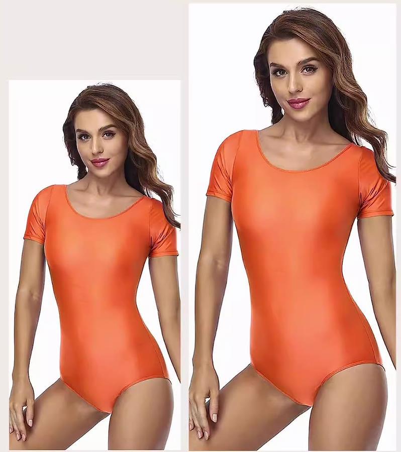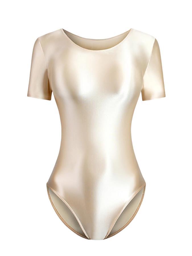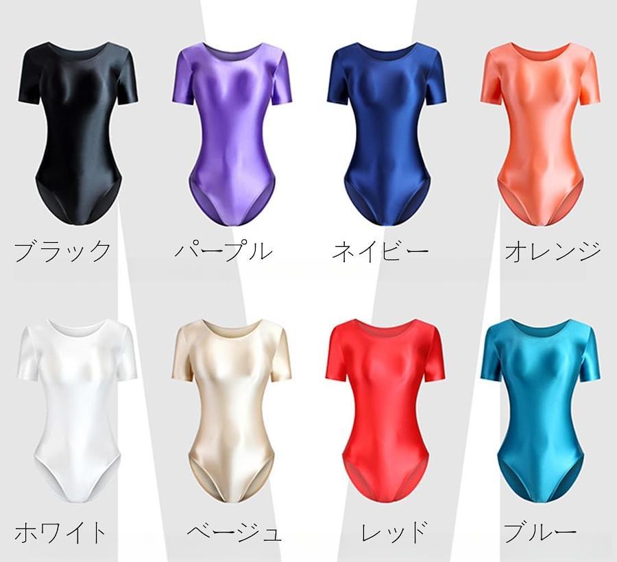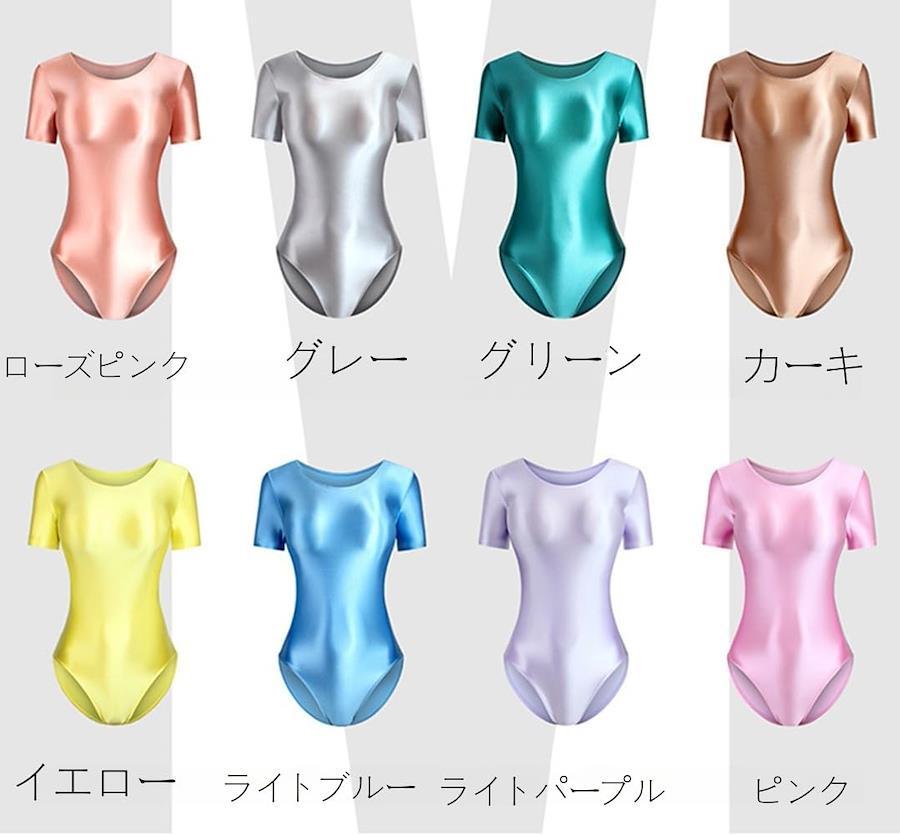 RIKOUZY Ultra-Glossy Short Sleeve Leotard, Competition Swimsuit, Smooth, Cosplay Bodysuit, Ballet, Gymnastics, Eye-catching, Women's, Super Seductive, Sexy