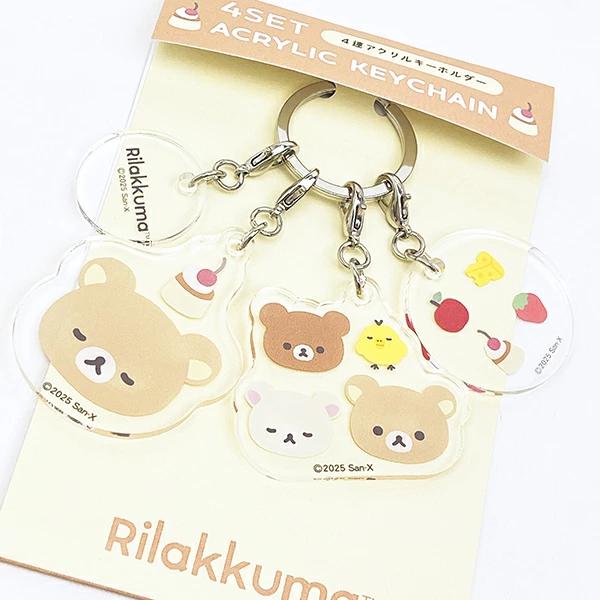 リッラクマの4連アクリルキーホルダーです。チャームは1つずつ取り外せるので、色々な使い方を楽しめますよ♪【サイズ】各パーツ:約W46.5×H52.6mm以内