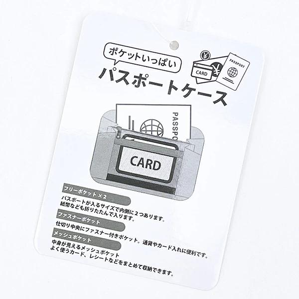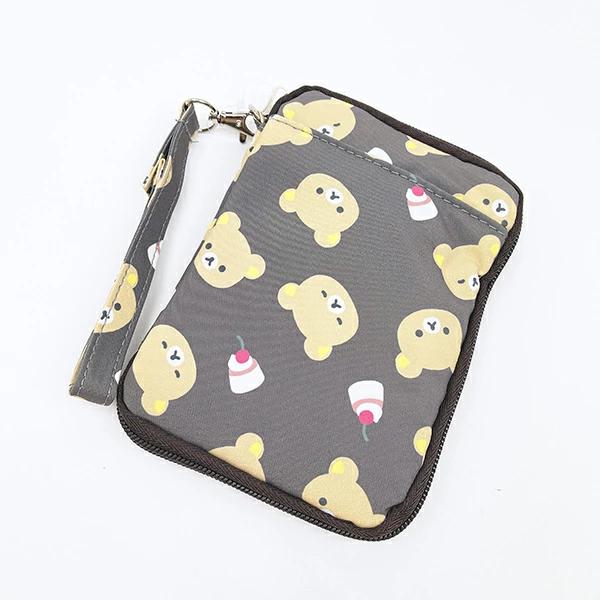 リラックマのチラシ柄がかわいいパスポートポーチです。フリーポケット2つ、ファスナーポケット、メッシュポケットと、ポケットいっぱいで使いやすい♪パスポート以外のものを入れても◎