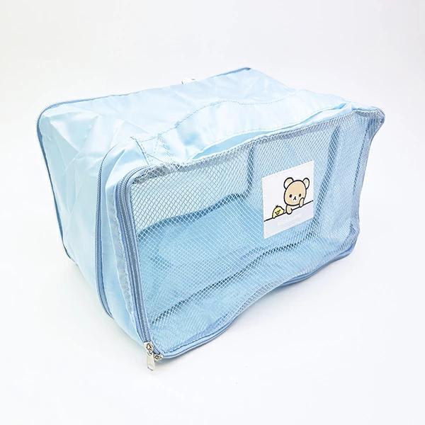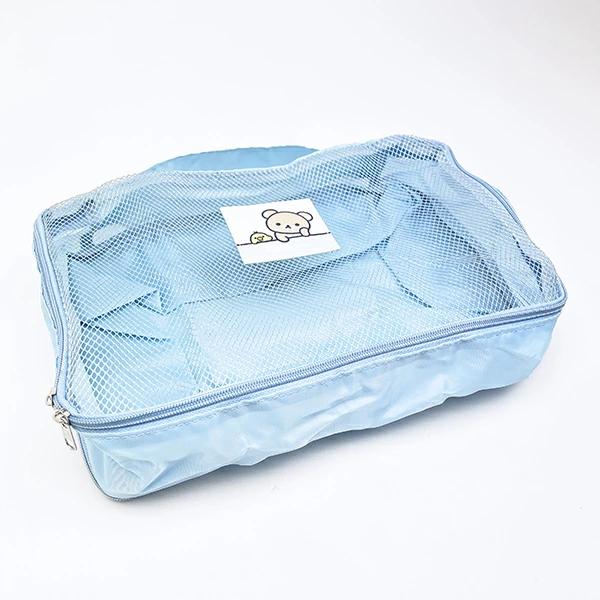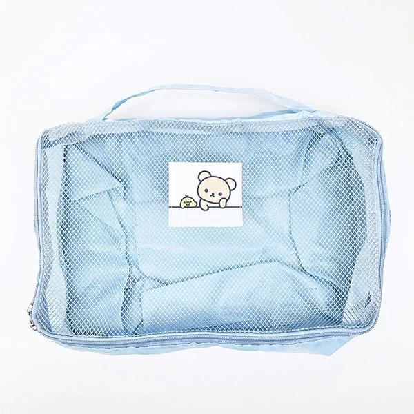 リラックマの圧縮ポーチです。ファスナーを閉めるると荷物がコンパクトに収納できるので旅行のお供に◎収納のめやすは、Tシャツで約5~12枚です。(厚みやサイズにより異なります。)