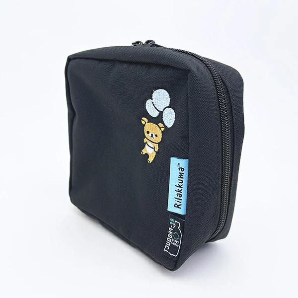 ペットボトルをリサイクルしたものを原料として作られた環境に優しいサステナブルな素材を使用した自立ポーチです。リラックマのワンポイントがかわいい♪