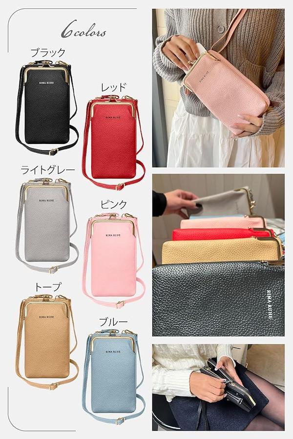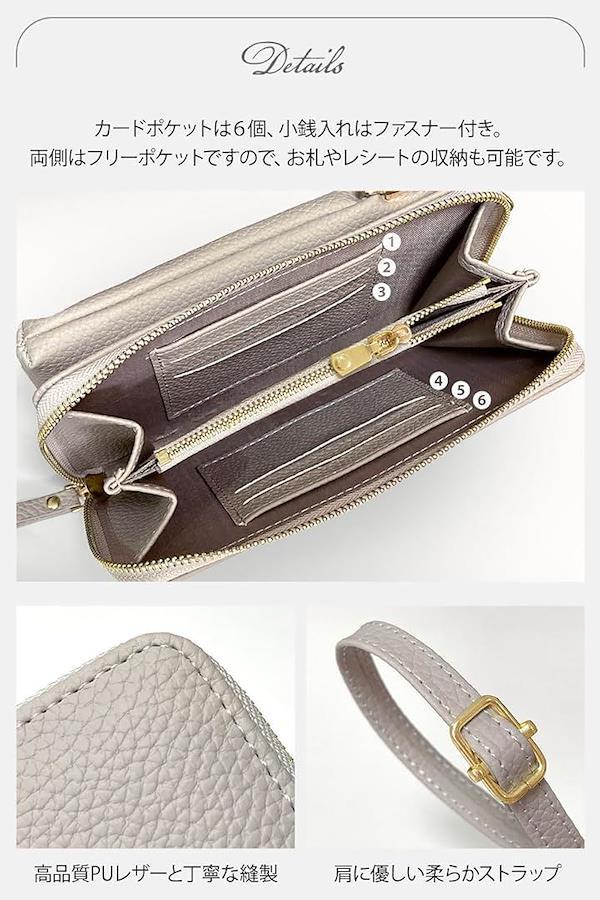 ショルダーストラップ付きでななめ掛け可能なスマホポーチです。長さ調整可能なタイプです。