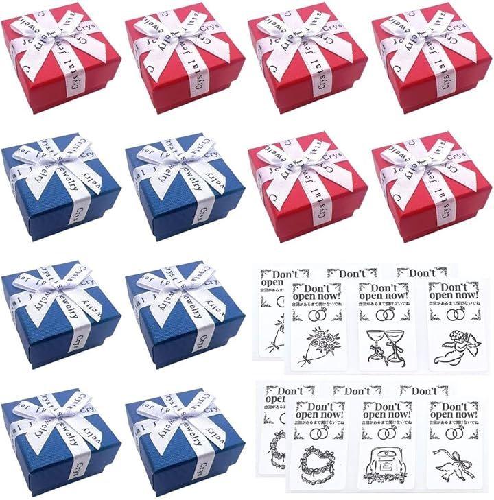 「商品仕様」BOXサイズ:約5cm角(高さ約3.5cm),BOX素材:紙,セット数:赤BOXx6個、紺BOXx6個(計12個)、シール12枚
