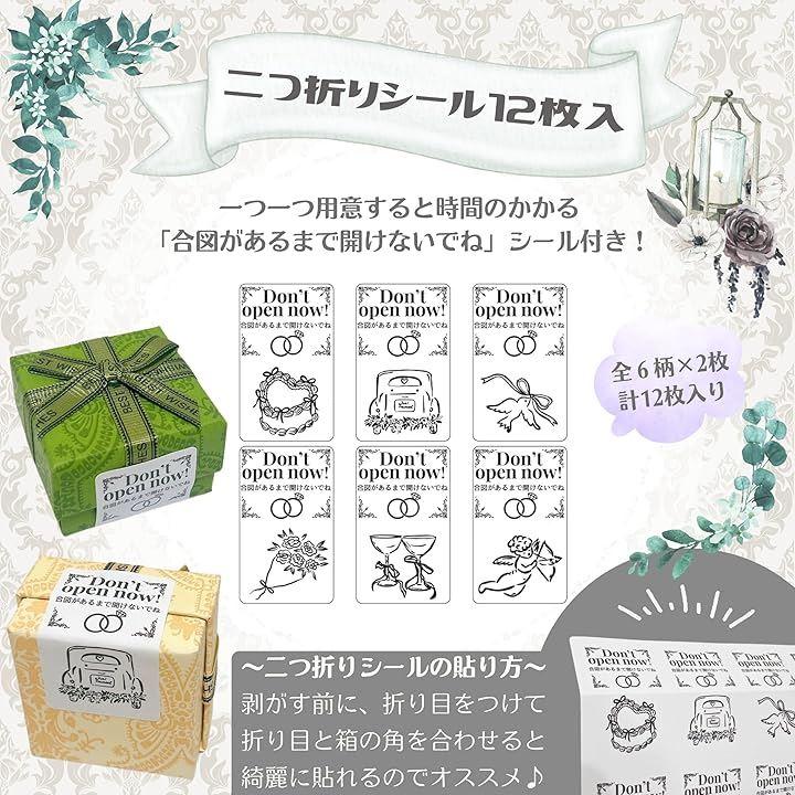 「まだ開けないでね」シールが付属しているので、結婚式準備の負担を少しでも減らすことができます。