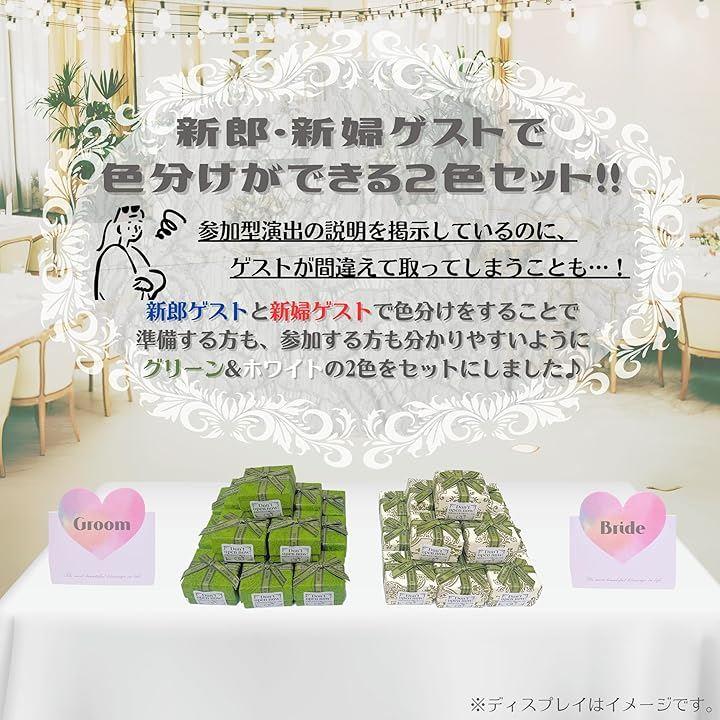 新郎・新婦のゲスト用にそれぞれ色分けができる、ダマスク柄がおしゃれなグリーンとホワイトの2色セットです。