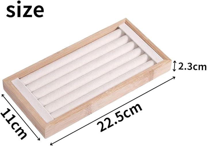 「シンプルで上品なリングディスプレイ」木製フレームと柔らかな生地を組み合わせた、シンプルで洗練されたリングディスプレイ。