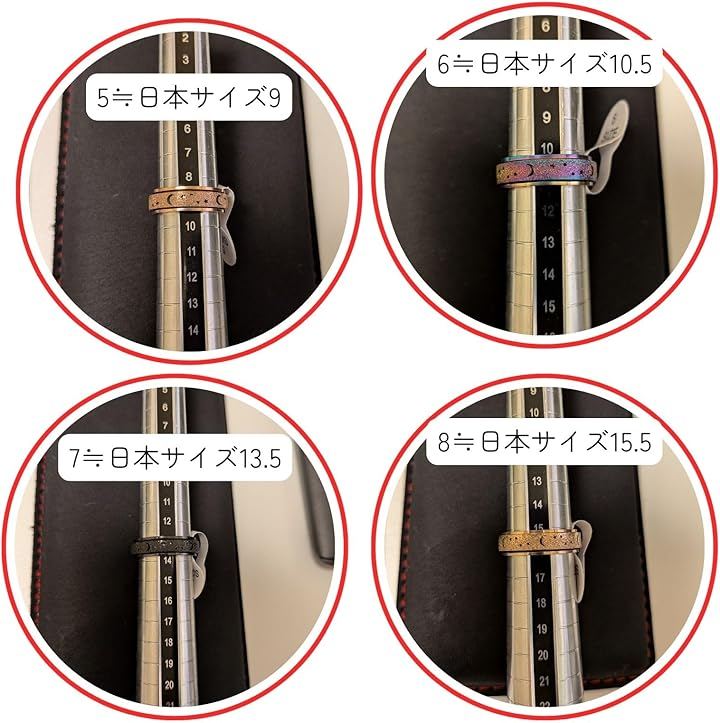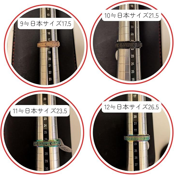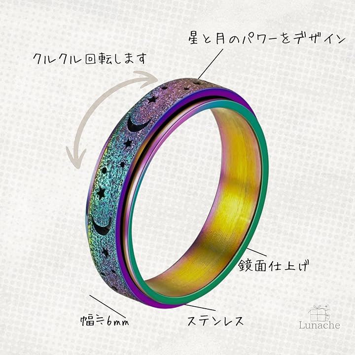 (6≒日本の10号 7≒日本の13号 8≒日本の16号 9≒日本の19号 10≒日本の22号 11≒日本の25号 12≒日本の29号) このフィジェットリング(ストレス解消リング)は、クルクルと回す動きで、不安解消やストレス緩和をサポートするアクセサリーです。