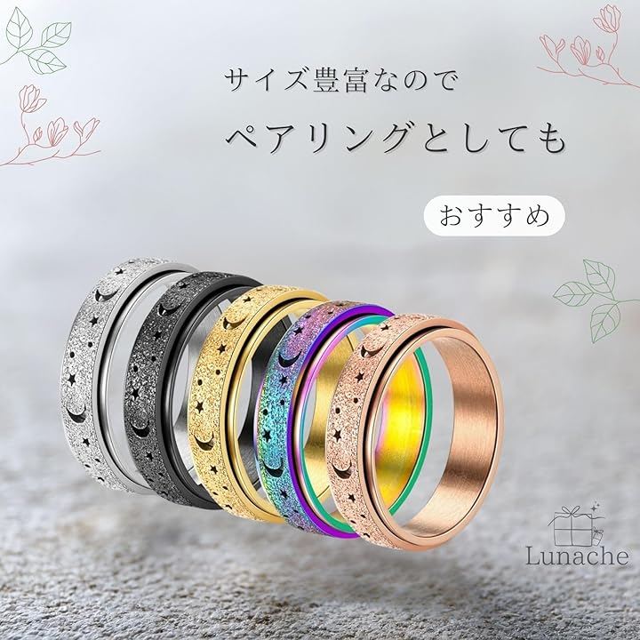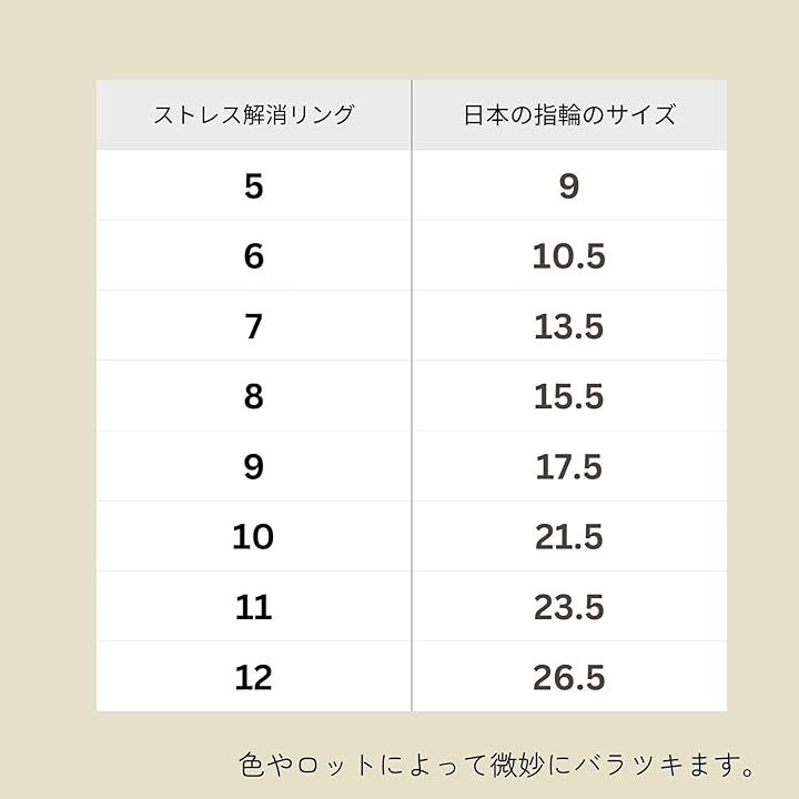 (6≒日本の10号 7≒日本の13号 8≒日本の16号 9≒日本の19号 10≒日本の22号 11≒日本の25号 12≒日本の29号) このフィジェットリング(ストレス解消リング)は、クルクルと回す動きで、不安解消やストレス緩和をサポートするアクセサリーです。