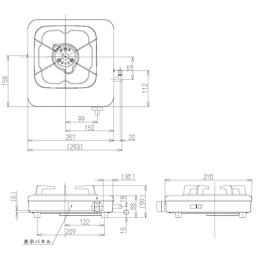 3営業日以内に発送≪新品未開封品≫:対応ガス種:プロパンガスLPGガスの接続方法:内径9.5mmガス用ゴム管サイズ/重量:高さ99(天板まで68)mm×幅267(器具栓まで293)mm×奥行296mm/1.8kgガス消費量:3.51kWトッププレート素材:ステンレス