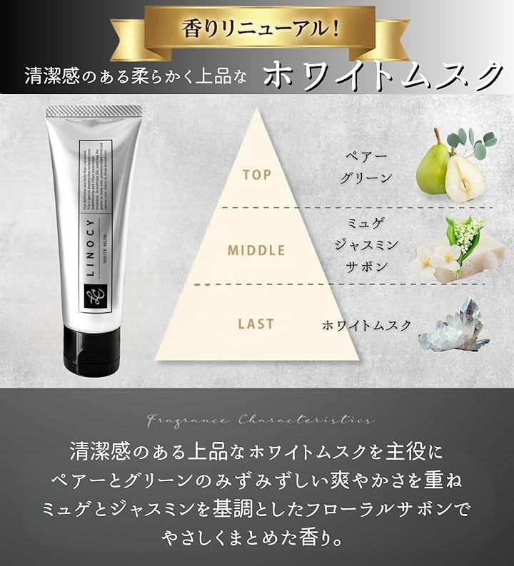 清潔感と上品さを兼ね備えたホワイトムスクを主役に、ペアーとグリーンの爽快感をブレンド。