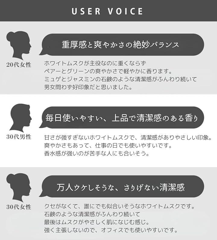 性別や年代問わず使える、清潔感のあるホワイトムスクの香り。