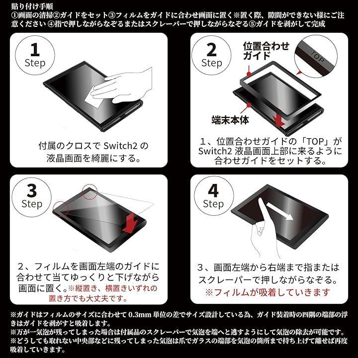 ***「対応機種」:Nintendo Switch2 / スイッチ2 用 フィルムサイズ 高さ107.57mm x 幅195.00mm *ガイドのカラーはロットによって「赤」もしくは「黒」のいずれかとなります、こちらは色の選択はできかねます、何卒ご了承くださいませ。
