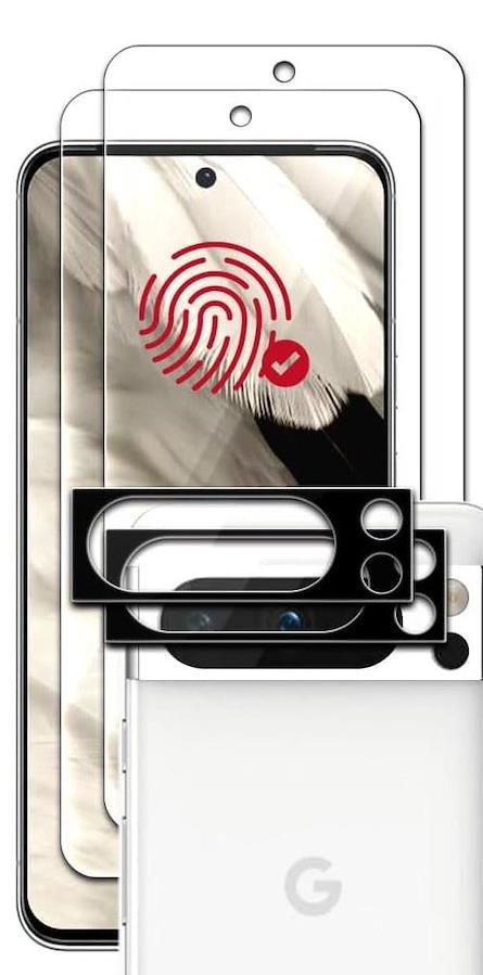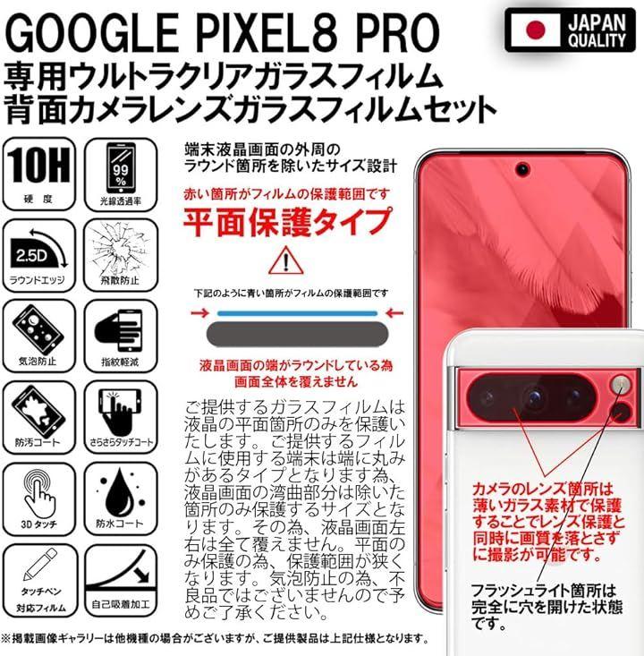 「対応機種及び仕様」*指紋認証対応版 Google Pixel 8 Pro クリアガラスフィルム2枚+カメラレンズ保護ガラスフィルム2枚セット。