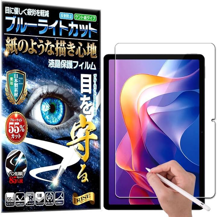 ブルーライトを最大55%までカットするペーパーライクフィルム素材を使用、カット率で目の負担を軽減し、目を優しく守ります。