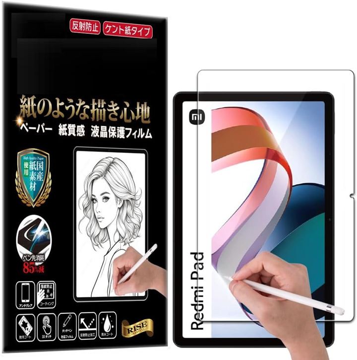RISE Anti-Glare Paper Texture Screen Protector: High-definition, matte finish, anti-reflective, anti-fingerprint, anti-bubble, antibacterial coating. Less likely to break than glass screen protectors.