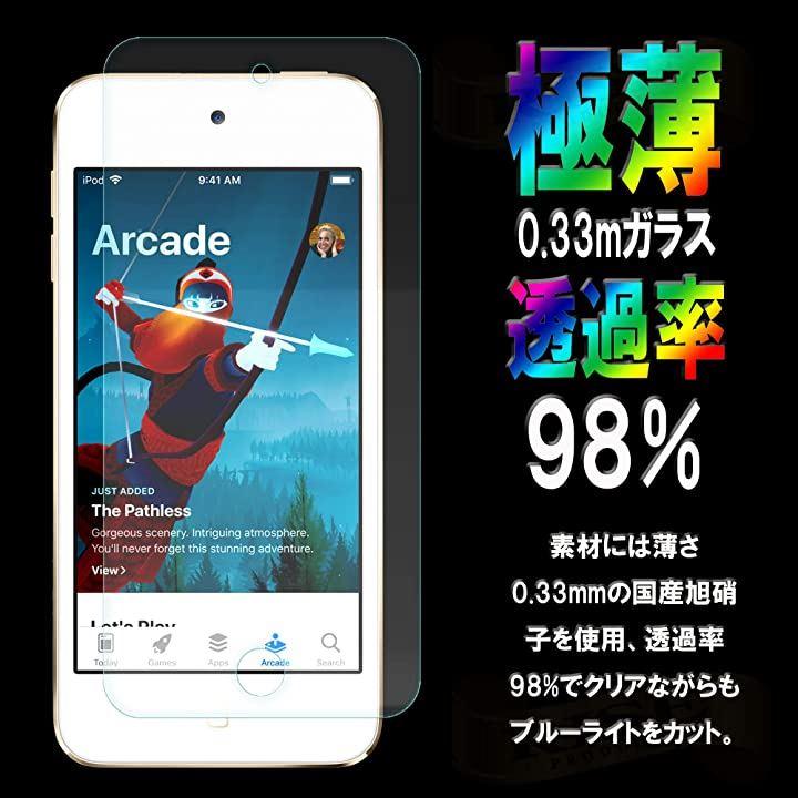 ・「商品仕様1」ブルーライトカット率90% 薄さ0.33mm 硬度9H 2.5Dラウンドエッジ加工 高透過率98% 飛散防止処理の国産旭硝子素材を使用。