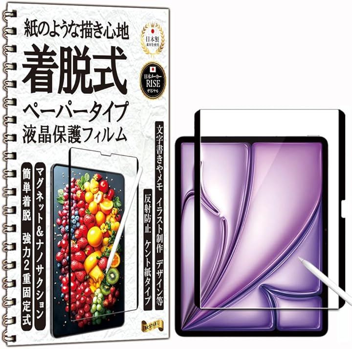 「対応機種」iPad Air 11 M3 第7世代 2025 用/ M2 第6世代 2024 11 インチ 用 ケント紙素材を使用したクリアタイプ着脱式ペーパー感覚の液晶保護フィルム。