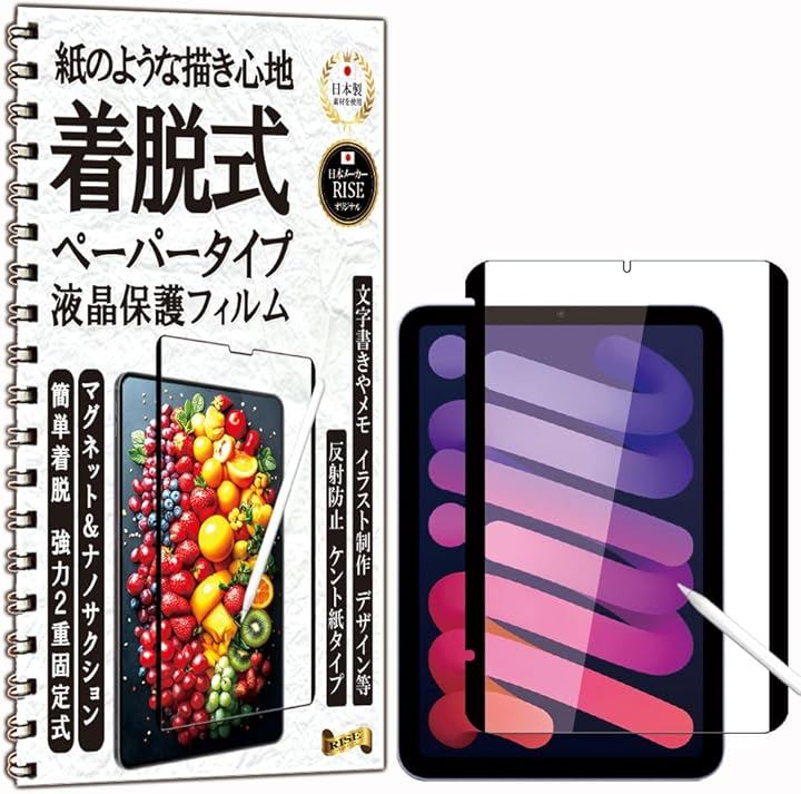 「対応機種」iPad mini7(A17 Pro)第7世代 2024用 / iPad mini (第 6世代) 2021 mini6 用 ケント紙素材を使用したクリアタイプ着脱式ペーパー感覚の液晶保護フィルム。