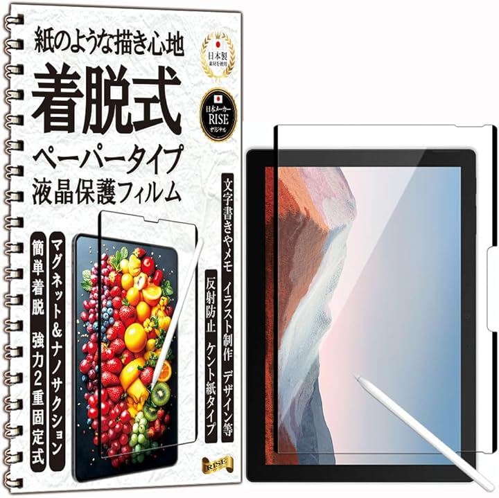 「対応機種」Surface Pro 7+/7/6/5/4/3 サーフェス 12.3インチ 用 ケント紙素材を使用したクリアタイプ着脱式ペーパー感覚の液晶保護フィルム。