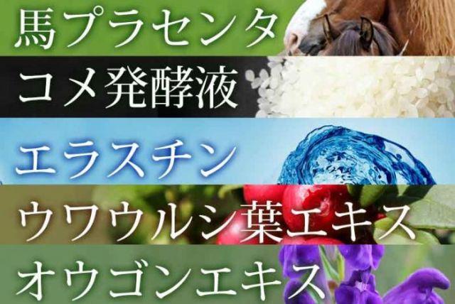 国産のダマスクローズオイル、ウォーターをベースに国産の高級馬プラセンタエキスと、ヒアルロン酸、天然植物エキス(保湿成分)を贅沢に配合しました。