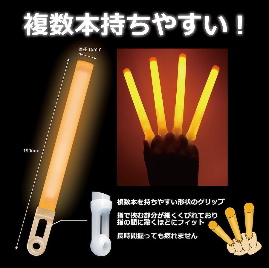 ライブ・イベント・アウトドア・防災の必需品! あらゆるシーンを盛り上げる定番ライトスティック。持ちやすく手になじむファンクショナルグリップ(意匠登録済)を採用。リバールーツこだわりのグリップです。