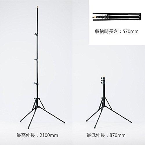 ダボ仕様:16mmオスダボ(先端3/8インチねじ)最高伸長:2100mm 最低伸長:870mm設置半径:500mm 収納時長さ:570mm最大耐荷重:4kg 本体重量:1,510g 素材:アルミ?もっと見る