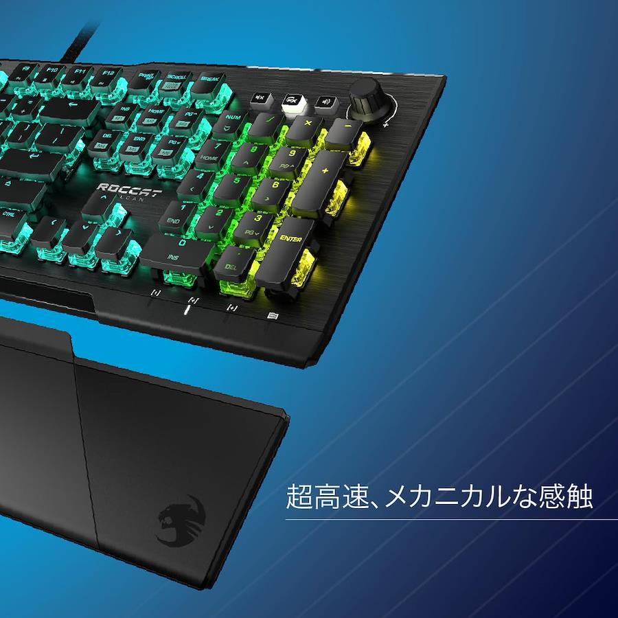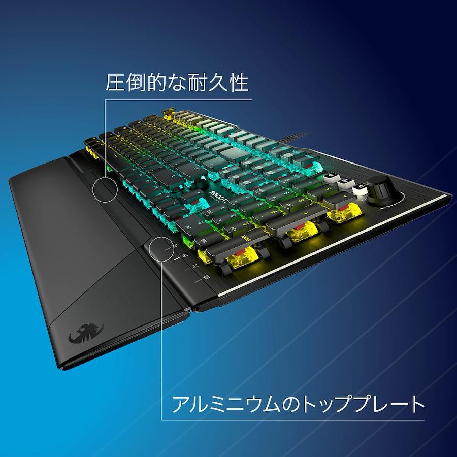 Vulcan Pro は、Titan Switch Optical を導入した新しいフルサイズのシリーズです。ROCCAT は、お馴染みのメカニカルなキーストロークの感触を持つ光学スイッチ技術を業界で初めて取り入れました。光学技術によって、超高速アクチュエーションに加えて驚異的な正確性を実現します。スイッチには、ミキサースタイルのオーディオコントロール、取り外し可能なパームレスト、AIMO によるイルミネーション等の特別な機能も付属しています。アルミニウムプレートによって補強された Vulcan Pro は、高い安定性と堅牢性を誇ります。