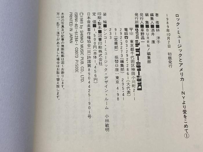 商品名:ロックミュージックとアメリカ (BURRN BOOKS NYより愛をこめて 1) シンコーミュージック 林 洋子
