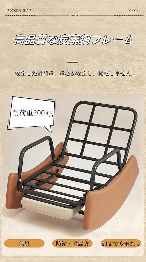 「多用途でスタイリッシュなデザイン」このロッキングチェアは、リビングルームや書斎、テラスなど、どのような空間にもフィットするデザインです。