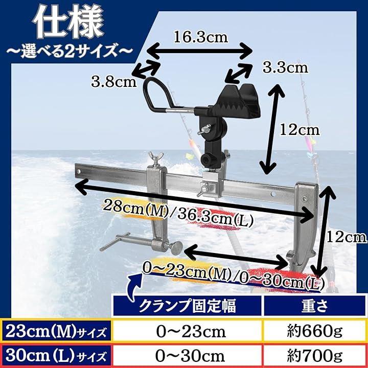 選べる2サイズ(クランプ幅23cm/30cm)で、あらゆる釣り場に対応。
