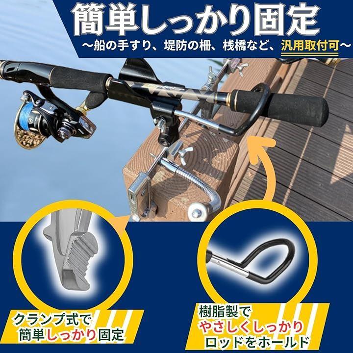 「クランプ式で簡単しっかり固定」最大23cm/30cmまで対応するクランプ式で、船の手すりや堤防の柵にしっかり固定可能。