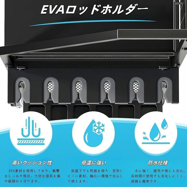 「12本ロッドを収納可能」両側に6本ずつ、合計12本のロッドを収納できるスペースがあり、たくさんのロッドを整理するのに最適です。