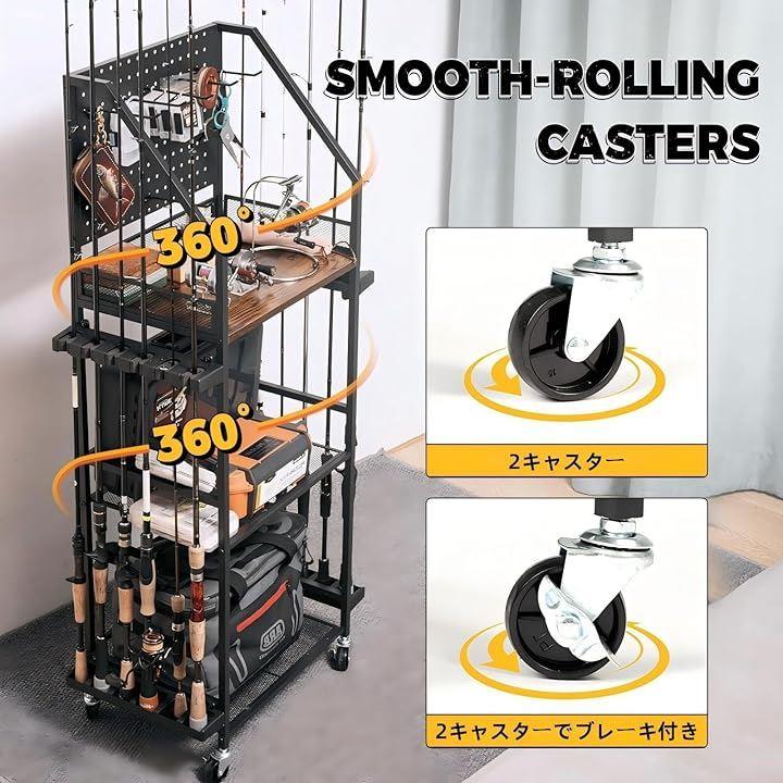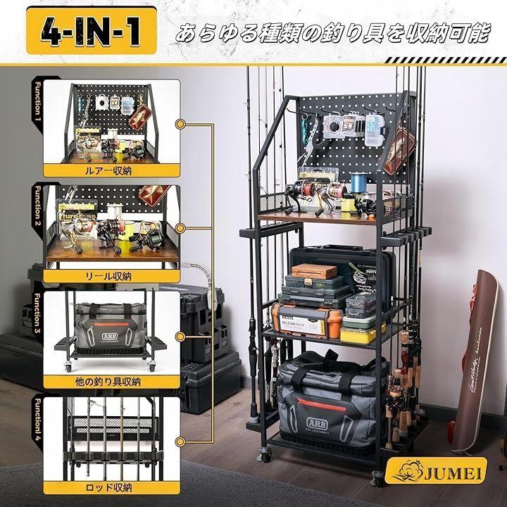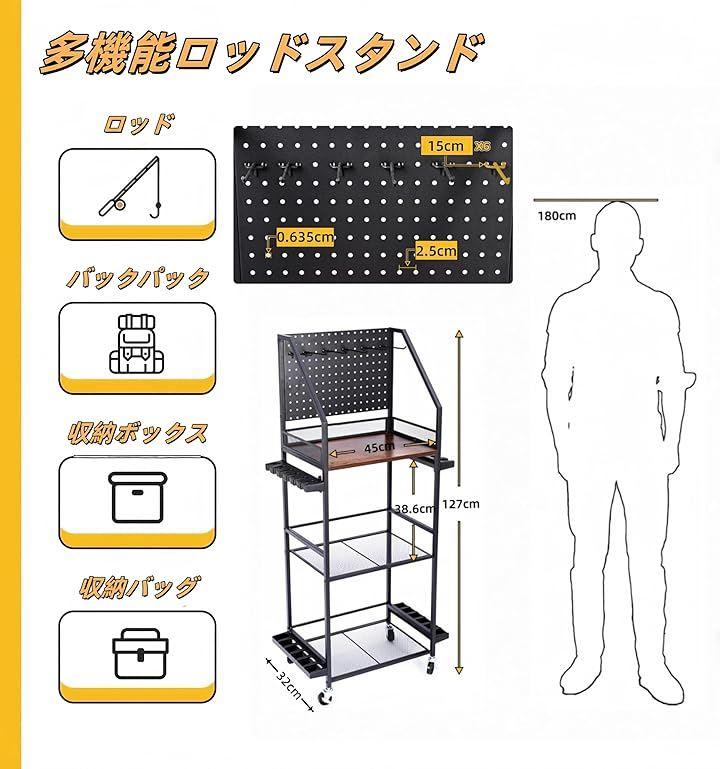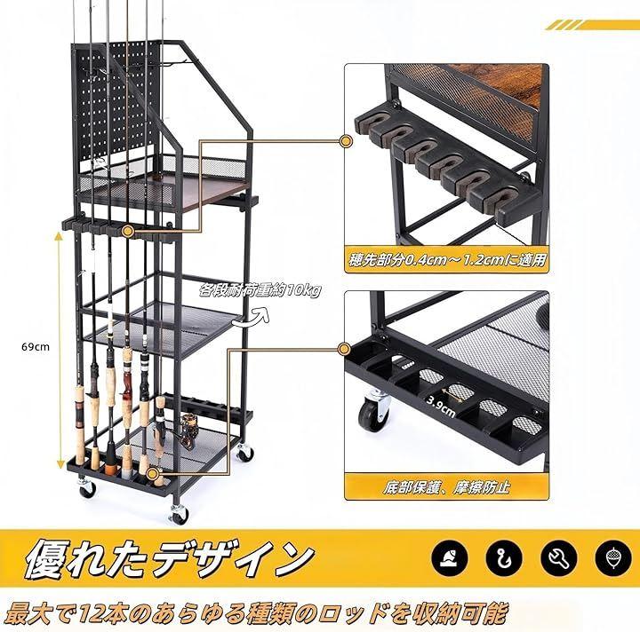 Jumeiロッドスタンドは、3段のデザインで、超大容量の収納スペースを提供し、さまざまな釣り道具や収納ボックスなどを簡単に収納できます。
