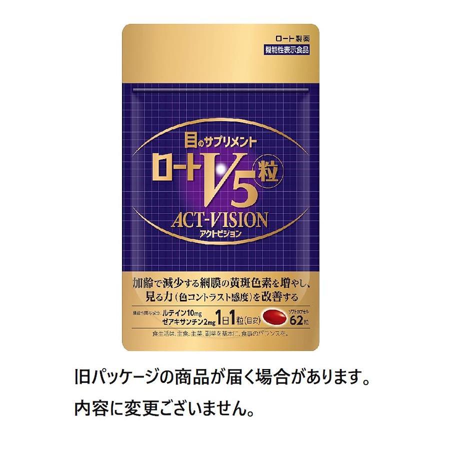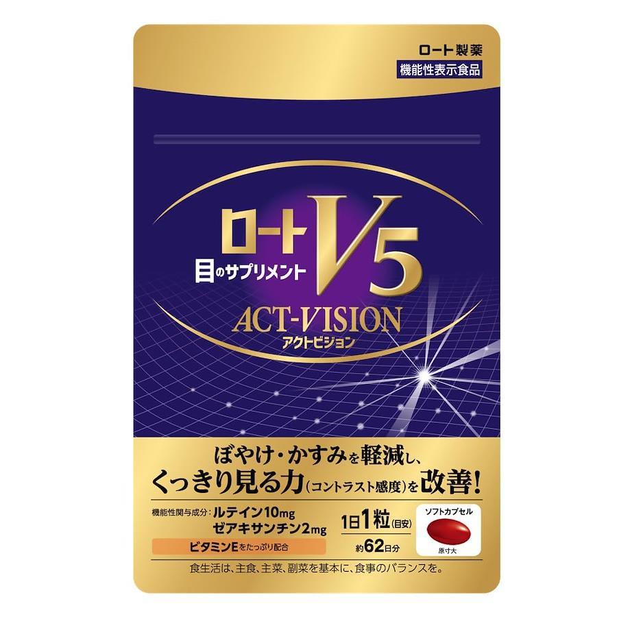 ■サイズ:??1.7x10x15.4cm;20g「ロートV5粒アクトビジョン」は、ルテイン・ゼアキサンチンを機能性関与成分として配合。※ 加齢で減少する網膜の黄斑色素を増やし、見る力(色コントラスト感度)を改善するサプリメントです。※機能性表示成分としてルテイン・ゼアキサンチンを配合。 「ロートV5粒アクトビジョン」は、ルテイン・ゼアキサンチンを機能性関与成分として配合。※加齢で減少する網膜の黄斑色素を増やし、見る力(色コントラスト感度)を改善するサプリメントです。※機能性表示成分としてルテイン・ゼアキサンチンを配合。 ルテインは〝見る〟に大切な網膜の中でも、光ダメージを受けやすい黄斑部に、とくに多く存在しています。しかし、40代をすぎると減りはじめ、その後もどんどん減少します。体内で生成できないため、外から補うことが必要です。 網膜の黄斑部が持つ、色の濃淡を識別する能力「色コントラスト感度」が下がってしまうと、物がぼんやり見えてしまいます。「見え方」にとことんこだわりぬいて開発した「ロートV5粒アクトビジョン」は、加齢で減少する網膜の黄斑色素を増やし、見る力(色コントラスト感度)を改善します! ルテインを10mgも配合!見る力をサポートする成分として知られるルテインをたっぷり配合しています。ルテインは特に、網膜への光ストレスを軽減させるとされています。 マリーゴールドから抽出したルテインを使用!ロートV5粒アクトビジョンのルテインの原料はマリーゴールドです。体内のルテインと同じ分子構造に精製しているので、吸収率がはるかに良いのが特長です。 ■重要なお知らせ