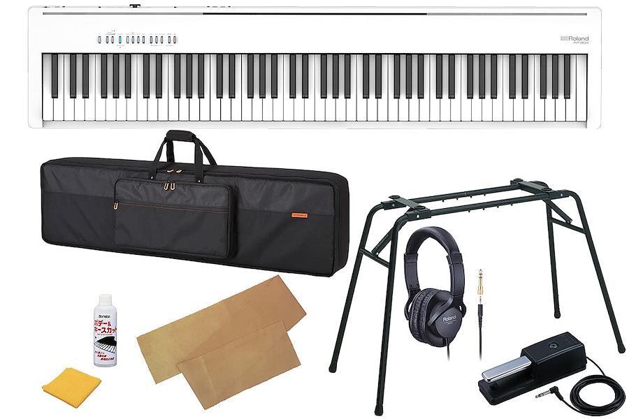BluetoothR オーディオに対応。最大同時発音数256音で余裕のある演奏が可能に。アウトプット端子は標準タイプ(L/Mono、R)を装備。純正スタンド「KS-13」、ダンパーペダル「DP-10」、ソフトケース「CB-B88V2」、ヘッドフォンがセットでお買い得!更に、鍵盤をホコリから守るキーカバーと鍵盤・ボディクリーナーキットをプレゼント!【セット内容】●Roland / FP-30X-WH●Roland / KS-13●Roland / DP-10●Roland / CB-B88V2●ヘッドフォン ※在庫状況により画像と異なる場合がございます。 ◆純正スタンド/ペダル/ヘッドフォン/ケースがセットでお買い得!
