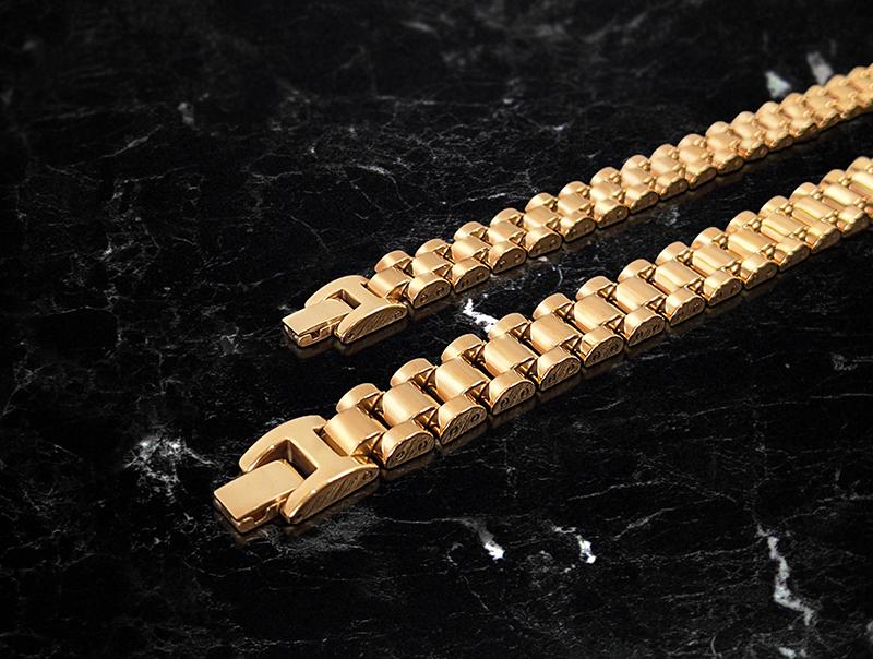 ★圧倒的な存在感と重厚感を兼ね備えたレアメタル、超硬タングステンブレスレット!*有名ブランド「ロレックス」を彷彿とさせ、まさに着こなしの格を上げる男のブレスレットです。*留め具には「TUNGSTEN85.7」と刻印されており、これは高純度&国際規格の証です。◇レアメタル「タングステン」とは金とほぼ同比重でダイヤモンドに匹敵するほどの強度を誇り金属の中でもっとも融点が高く宇宙ロケットの部材にも使用されています。その強度は50年手入れしなくても輝き続けるといわれており、色あせない重厚感をお楽しみ頂けます。人体への影響が少ないことからCT装置に使用されるなど医療分野でも活躍している素材で金属アレルギーを起こしにくく、滅多なことでは傷つかない希少金属としても有名です。*内側に2000ガウスの磁気マグネットを搭載しており、健康志向の方にも重宝されます。*ベロア調の専用箱に入れてのお届けでプレゼントにも最適です。