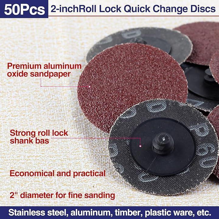 「セット内容」50本 x #60 ロールロック サンディングディスク。