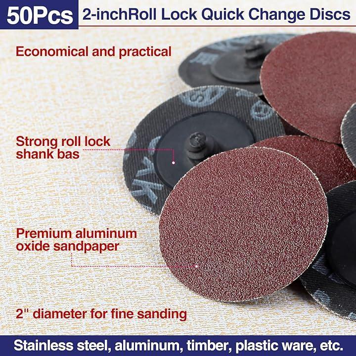 「セット内容」50本 x #120 ロールロック サンディングディスク。
